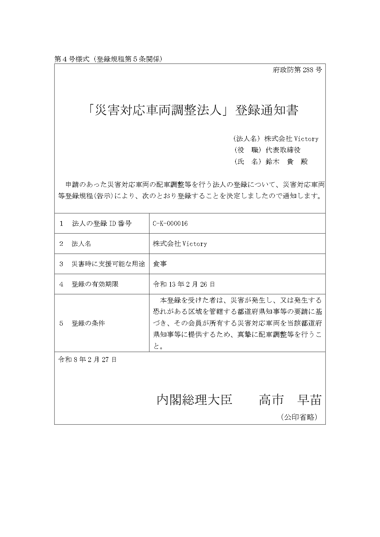 内閣府「災害対応車両登録制度【D-TRACE】」の調整法人に登録承認されました